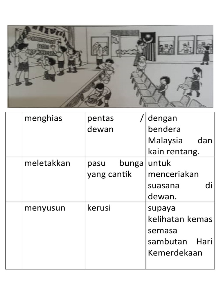 Majlis Sambutan Hari Kemerdekaan diadakan untuk memperingati Hari Kemerdekaan Negara dan memberi kesedaran kepada murid-murid erti. Tulis lima ayat yang lengkap tentang keadaan dalam gambar di bawah. Apr 06 2016 yang disayangi rakan sekalian.