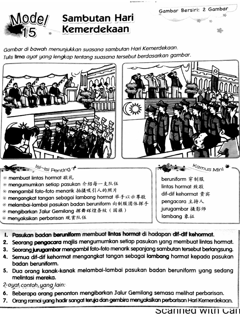 Nota komsas isi karangan contoh karangan spm. Video ini membimbing anda untuk menulis ayat berdasarkan gambar suasana sambutan Hari Kemerdekaan di sekolah. Modul bahasa melayu tahun 4 sjk latihan bina 5 ayat aktiviti semasa sambutan hari kemerdekaan.